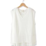 フレンチスリーブのリブ編みニットベスト。インナーのタンクトップが付いたお得なセット。タンクトップは裾にフレア素材がドッキングされ、ニットベストと合わせるとフェミニンで女性らしい雰囲気に。ニットベストは衿付きシャツと合わせてスクールライクに着てもかわいいです◎モデル情報:身長168cm B76W59H84 着用サイズ:02(M)店舗へのお問い合わせ商品番号:511-28005主に夏に着用いただける商品です。