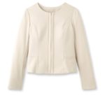 セレモニーやフォーマルなど新シーズンに抑えておきたいノーカラージャケットです。前立てにテープをあしらったシンプルなデザインだからどのアイテムも品良くまとめる優秀アイテム。ストレッチ入りなので動きやすさと美シルエットを叶えました。サイズ違いの商品もご用意しております。R:153-48200モデル情報:身長175cm B85W60H88 着用サイズ:02店舗へのお問い合わせ商品番号:153-48856主に春に着用いただける商品です。