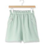 風合いが麻調で涼しげな印象のある、ブッチャー素材でお作りしたスカート見えするショートパンツです。ウエスト部分のフリルとポケットにビジューを施したガーリーな仕上がりに。ウエストゴムなのでラフな穿き心地が嬉しいです。フェミニンスタイルにオススメな1枚。モデル情報:身長165cm B80 W59 H86 着用サイズ:38(M)店舗へのお問い合わせ商品番号:567-68022主に夏に着用いただける商品です。