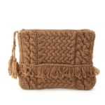 手編みのようなざっくりとした編みが可愛らしいニットのクラッチバッグ。いろいろな編みをミックスして表情豊かに仕上げています。内側はナイロン製でたっぷりと入る収納力がポイント。フリンジ使いなど遊び心を感じるデザインが魅力です。内側ポケット×3店舗へのお問い合わせ商品番号:143-09135