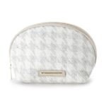 メタルプレート使いが上品な仕上がりのラウンドポーチ。コスメやちょっとした小物が入る大きさでデイリー使いにぴったり◎ ツイードと千鳥柄のジャカードの2種類展開です。店舗へのお問い合わせ商品番号:C95-09147